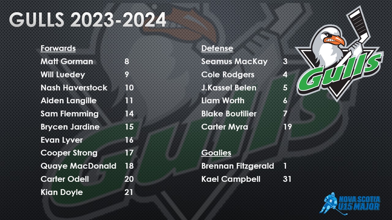 The Gulls wrapped up preseason this past weekend and completed its 2023-2024 roster. Returning Gulls, Evan Lyver, Sam Flemming, Quaye MacDonald, and Kael Campbell, are joined by a talented crew of 2009 and 2010 players. The Gulls hit the road on October 14 to play the Novas. Join us for the home opener on October 15 as the Gulls take on local rivals, Bedford Bandits. Go Gulls Go!